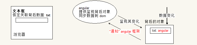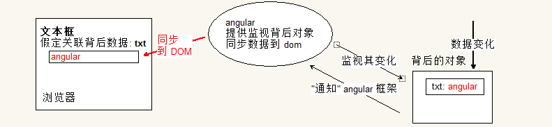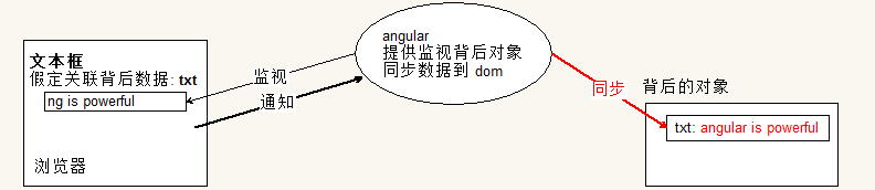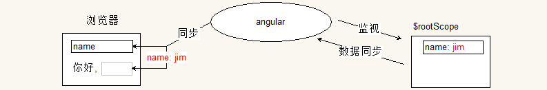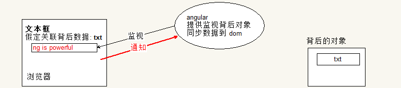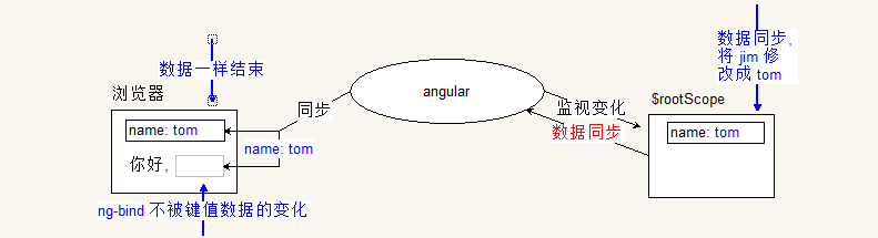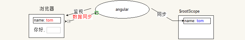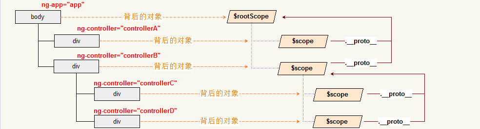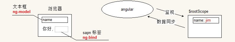 这个对象的显示范围由 ng-app 来标记, 凡是 ng-app 包含的范围都属于该对象所维护的区域.