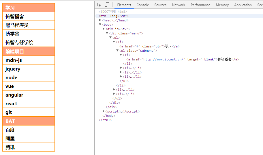 如此, 只要点击对应的 a 标签, 就会触发相应的 click 事件, 即会将对应的 menu 变量取反.