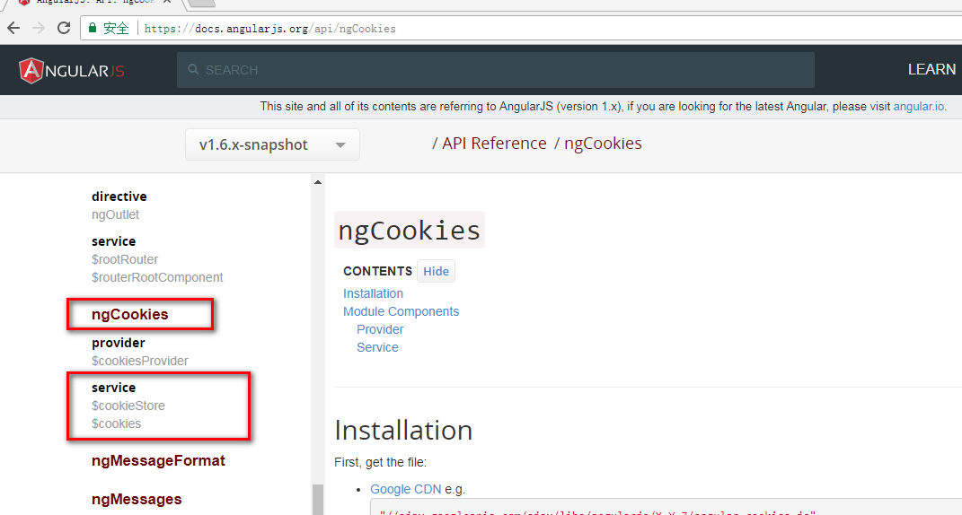"ngCookies", 索引引入代码写成( 当然需要先引入 js 文件 ):