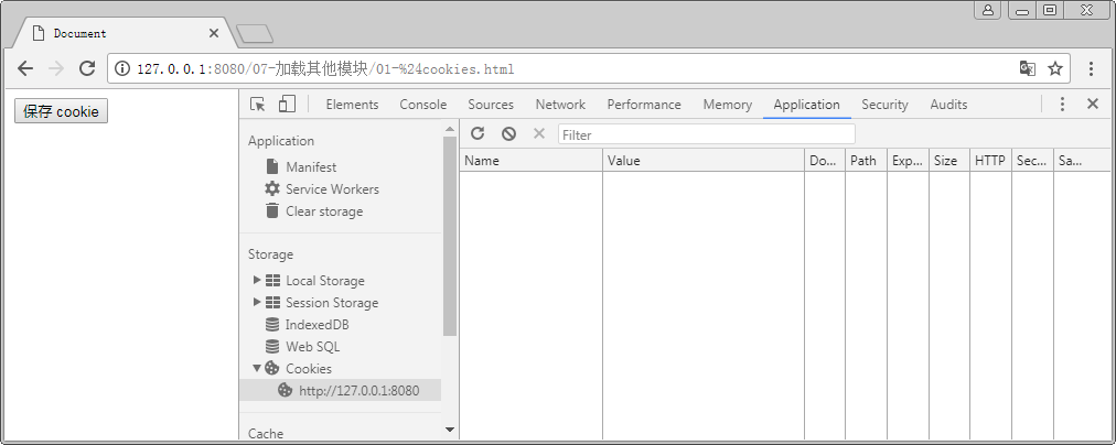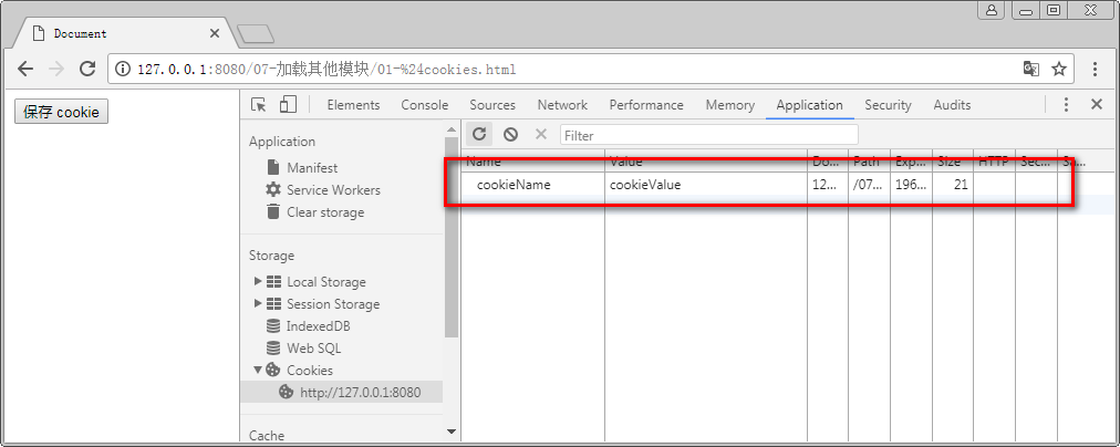 这里模块利用一个按钮在 浏览器中存储一个 cookie 数据来看看如何使用这个模块.